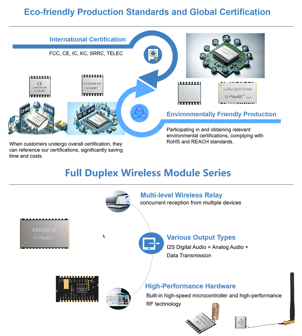 NiceRF, основанная в 2011 году, является инновационным предприятием, специализирующимся на коммуникационных приложениях Интернета вещей (IoT). Мы интегрируем исследования, разработки, производство и продажи, уделяя особое внимание предоставлению отраслевым клиентам высокопроизводительных беспроводных модулей и индивидуальному дизайну продуктов. Мы были удостоены званий «Национальное высокотехнологичное предприятие» и «Специализированное, усовершенствованное, выдающееся, инновационное (SRDI) предприятие» провинции Гуандун.