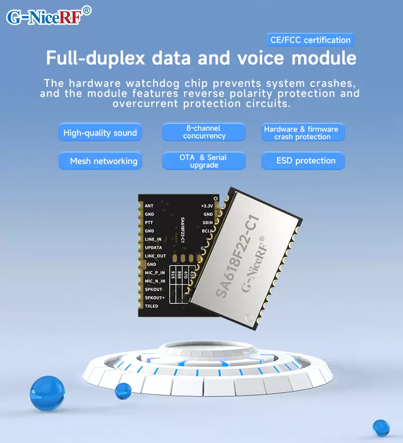 Серия SA6X8-C1 и серия SA6X8 от NiceRF Wireless представляют собой интегрированные модули полнодуплексной передачи цифровых и аудиосигналов , доступные в двух характеристиках мощности: 160 мВт (F22) и 1 Вт (F30). Обе серии обеспечивают беспроводную передачу голосовых сигналов через цифровые аудиоинтерфейсы I2S или аналоговые аудиоинтерфейсы. Они имеют несколько общих функций, включая возможности многоуровневой беспроводной ретрансляции, поддержку обновлений беспроводного (OTA) и последовательного порта, защиту от электростатического разряда (ESD), сеть MESH и сторожевую защиту от сбоев системы. В этой статье кратко проанализированы общие характеристики и преимущества обновления этих двух модулей.