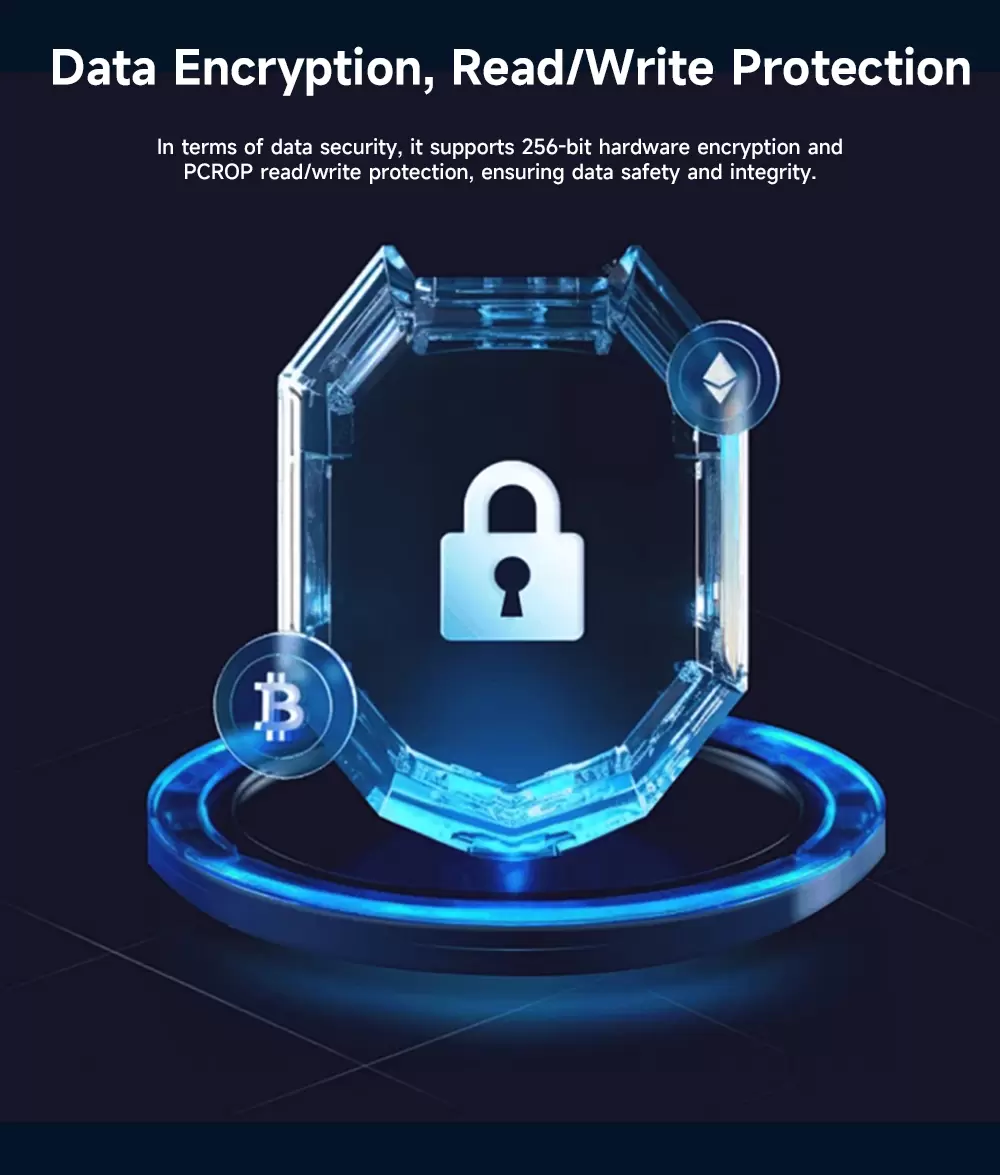 Генератор истинных случайных чисел (RNG), аппаратное шифрование AES, 256 бит.