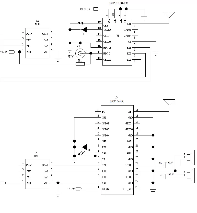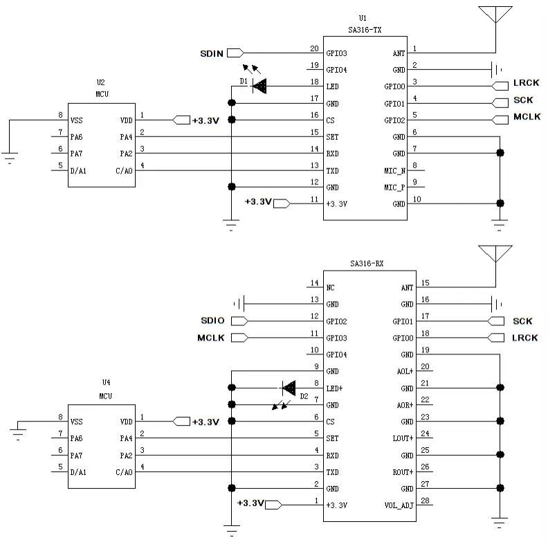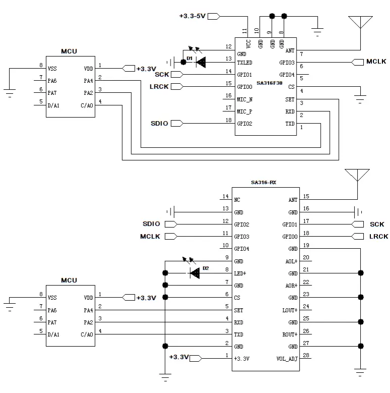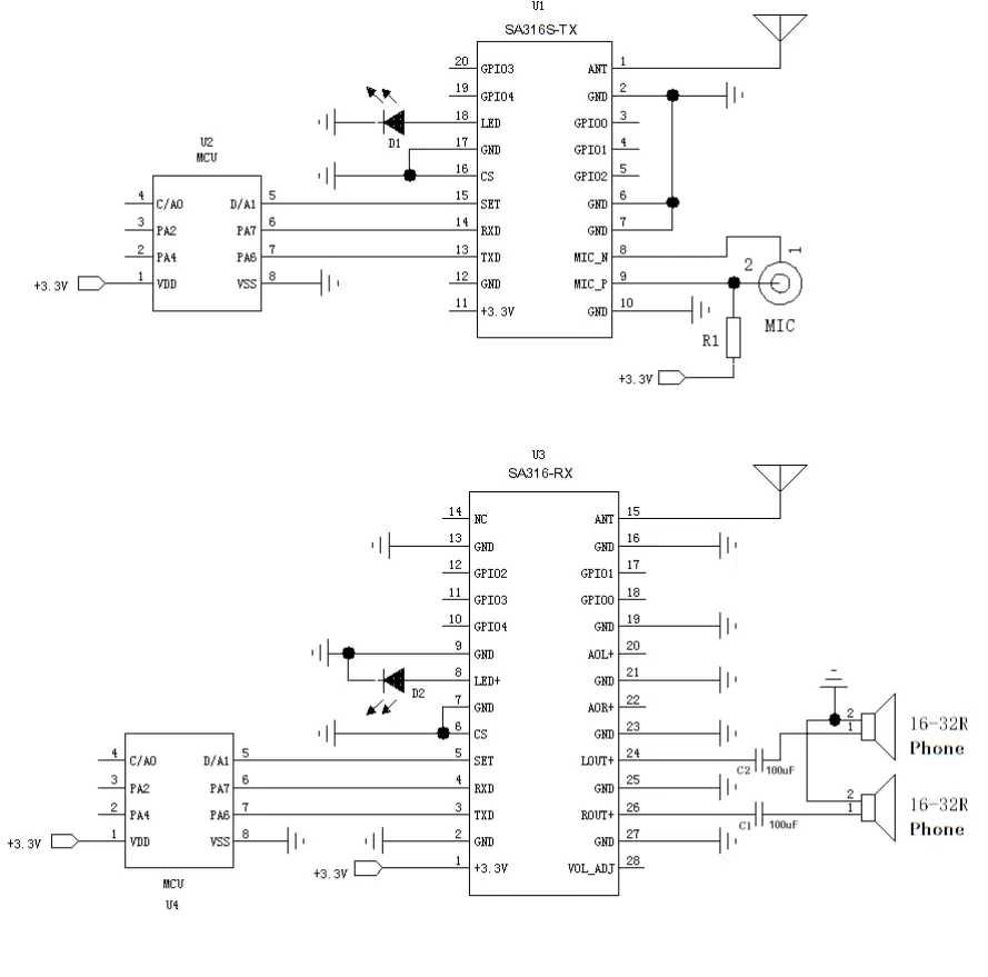Серия SA316S включает в себя модули передатчика SA316S-TX, SA316F30 и приёмника SA316S-RX. В этой серии используется микросхема беспроводной высококачественной передачи голоса. Она поддерживает внешние двухрежимные цифровые аудиоинтерфейсы PCM/IIS и предоставляет клиентам стандартизированный последовательный интерфейс. Пользователи могут быстро и легко настраивать частоту приёмопередатчика, громкость, усиление микрофона и другие параметры модуля с помощью команд последовательного порта, что широко используется в ситуациях, требующих высокого качества звука.